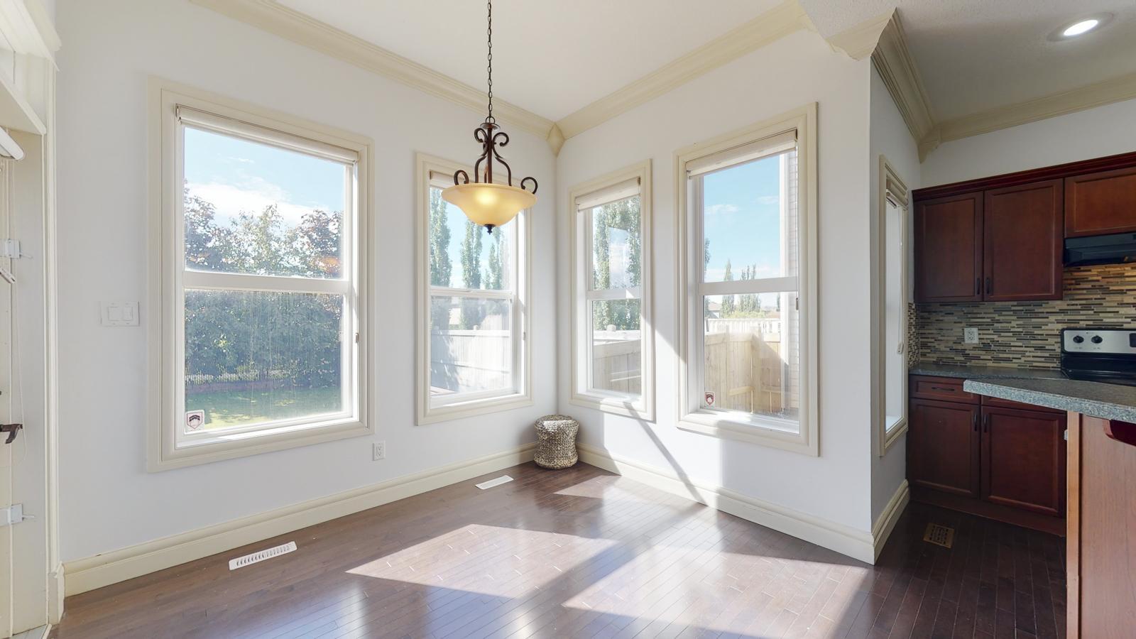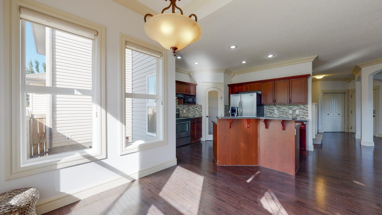 Gorgeous house with 4 bedrooms + den, bonus room, formal dining, and living room with double attached garage with driveway for extra parking. The Master bedroom has an additional deck with a huge en-suite bathroom. This house has a well-maintained fenced backyard with a double deck for BBQ, summer activities, kids' play, and a shed—a fully finished basement with a Wet bar and a huge recreation hall. The house is in a peaceful community in Rutherford. Significant roads connect to Rutherford Road SW and James Mowatt Trail SW. Close to schools, parks, shopping centers, and transportation.